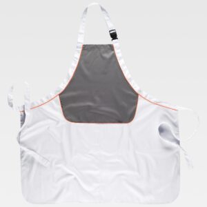 Avental com peito e bolso. Confecionado em tecido plano 100% poliéster com tato de algodão suave e agradável. Tiras laterais para ajustar por nó na cintura e alça estreita para pendurar à volta do pescoço. Bolso central grande para ter tudo acessível. Contornos com costuras dobradas que reforçam a sua estrutura. Métodos adequados de marcação: sublimação sobre a cor branca, serigrafia, vinil, transfer, bordados, cosidos. Ideal como uniformes de hotelaria e restauração, brindes personalizados e têxteis publicitários.