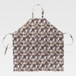 Avental combinado com peitilho. Dois bolsos laterais e cortes decorativos acabados com debruns em contraste. Gola regulável com botões. Cintas para ajustar na cintura. 90X90 cm.