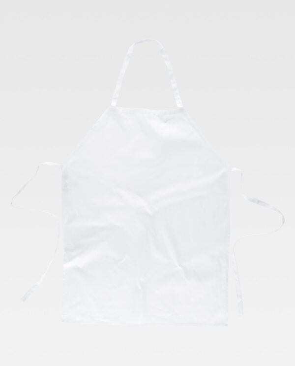 Avental com peitilho de desenho simples em algodão. Fita no pescoço fixa. Cintas para ajustar na cintura. Ligeiro, hipoalergénico e de tacto suave. 70X90 cm