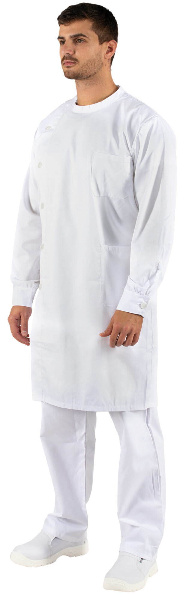 Bata em Sarja;65% Poliester 35% Algodão200g.Ajuste por botões;1 bolso no peito e dois nas laterais;Botões nos punhos.