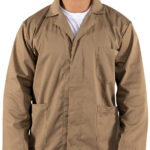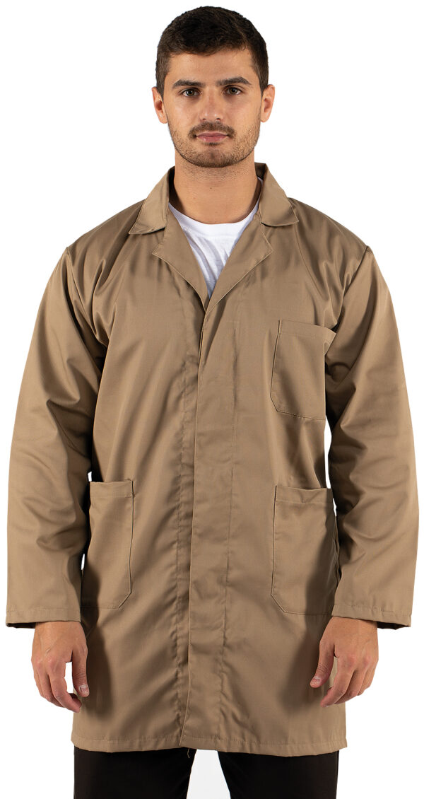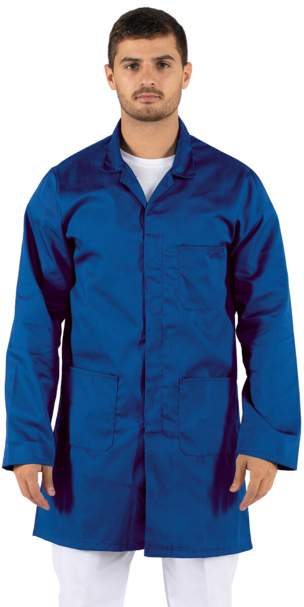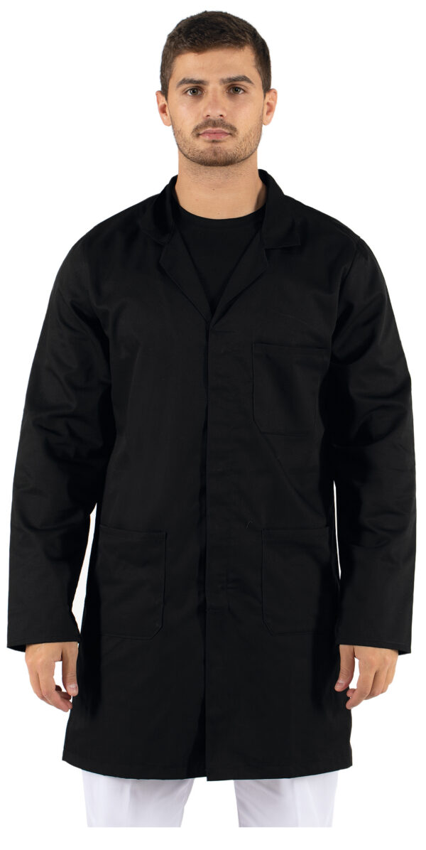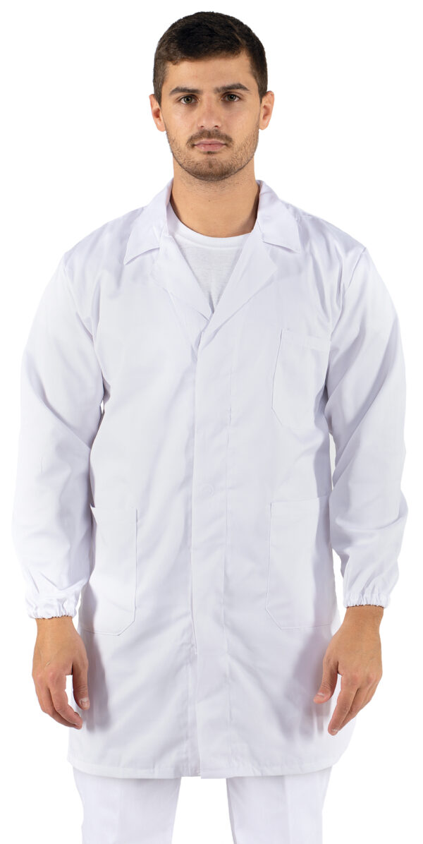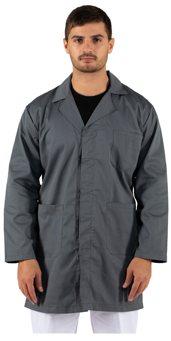 Bata de homem em sarja.65% Poliester 35% Algodão de 200 g.Ajuste por botões com carcela;3 bolsos;