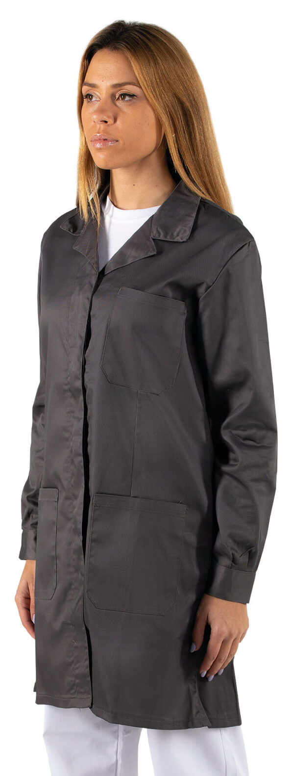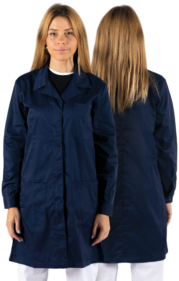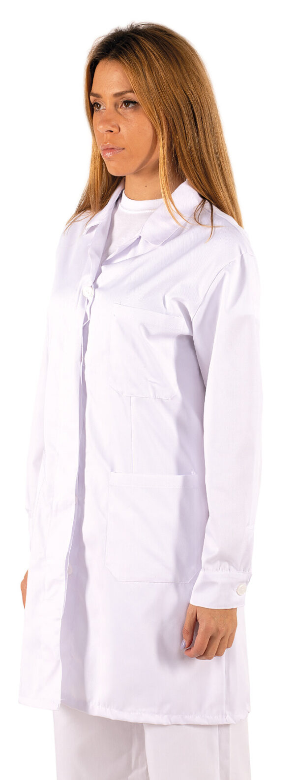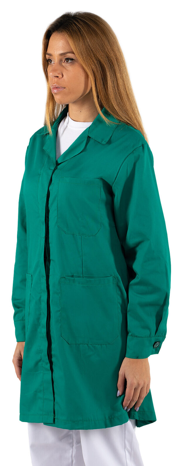 Bata de senhora em sarja.65% Poliester 35% Algodão de 200 g.Ajuste por botões com carcela;Botões no punho;3 bolsos;