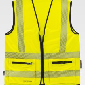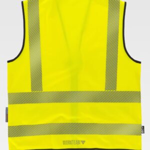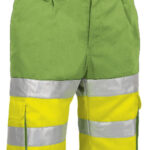 Bermuda de trabalho multibolsos de Alta Visibilidade. Confecionada em tecido sarja de algodão e poliéster resistênte e duradouro, inclui duas fitas retro-refletoras cosidas nas pernas para maior segurança. Vestuário certificado como EPI de Categoria II de Alta Visibilidade em base as normas 13688 e 20471 classe 1, duração máxima de 50 lavagens. Fecho de correr com botão e pala, cintura com presilhas para cinto e elástico na parte de trás que propociona maior comodidade e um melhor ajuste. Dois bolsos na cintura, dois traseiros e dois nas laterais (os quatro com fole, pala, velcro e puxador refletor) para fácil acesso, todos com presilhas de segurança para maior durabilidade e resistência. Métodos adequados de marcação: serigrafía, transfer, bordados, cosidos. Ideal como roupa de trabalho e uniformes de verão.