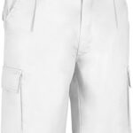 Bermuda de trabalho multibolsos. Confecionada em tecido sarja de algodão com poliéster para maior durabilidade e resistência. Cintura com pregas à frente e elástico atrás para maior conforto e melhor ajuste. Dois bolsos inclinados na cintura, dois bolsos laterais com velcro e um bolso traseiro na direita para fácil acesso. Costuras principais duplas e pontos de tração extra, reforçadas com presilhas de segurança para maior durabilidade e resistência. Métodos adequados de marcação: serigrafia, transfer, vinil, bordados, cosidos. Ideal como roupa de trabalho y uniformes de verão.