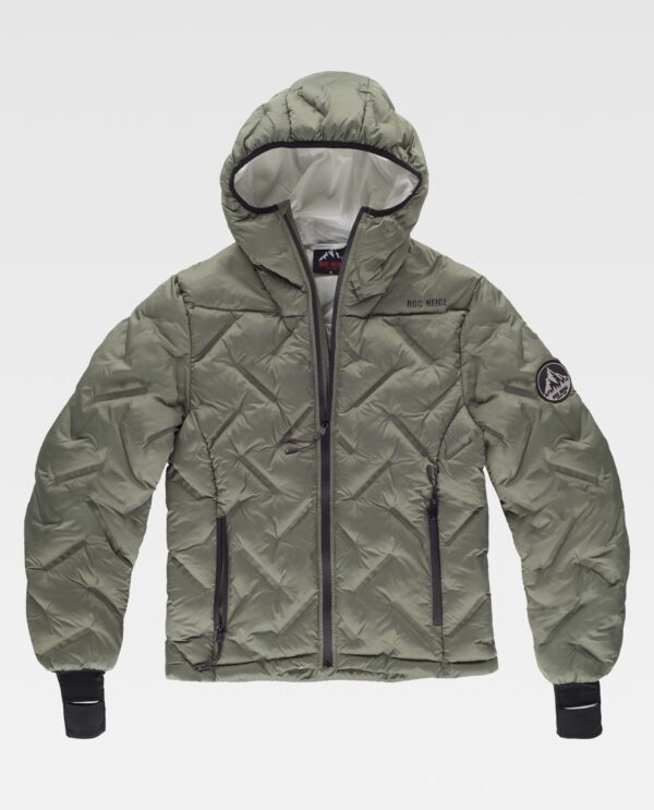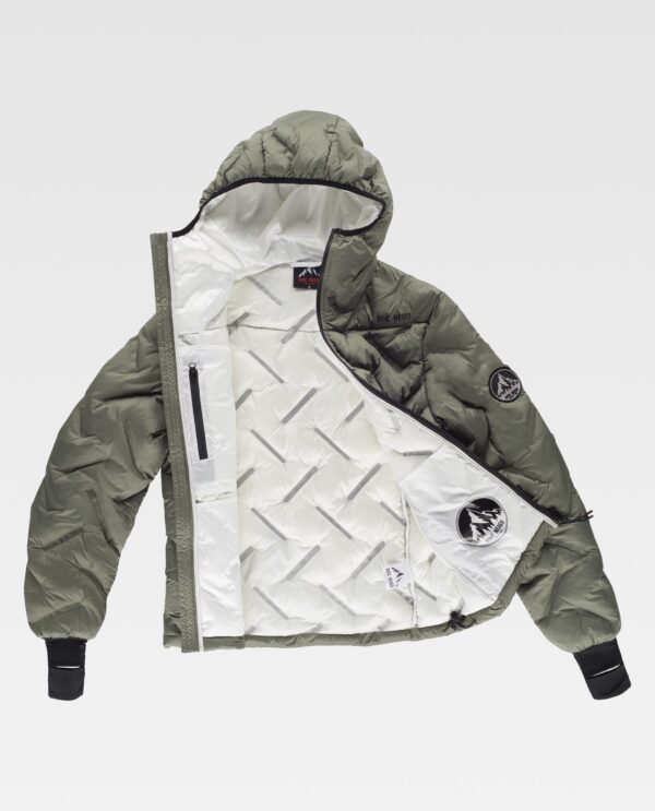 WÁLD Jaqueta acolchoada, lacrada, com capuz e gola alta. O desenho original com lacrado oferece estilo e conforto. Costuras lacradas. Tratamento repelente à água e cremalheiras impermeáveis. Fecho de cremalheira e proteçao no queixo. Dois bolsos laterais interiores com cremalheira oculta. Um bolso de chapa com fecho de cremalheira no interior. Manga com punho elástico e abertura no polegar. Embainhado com viés elástico. Logótipos estampados no peito e costas e detalhes estampados no interior.