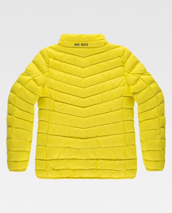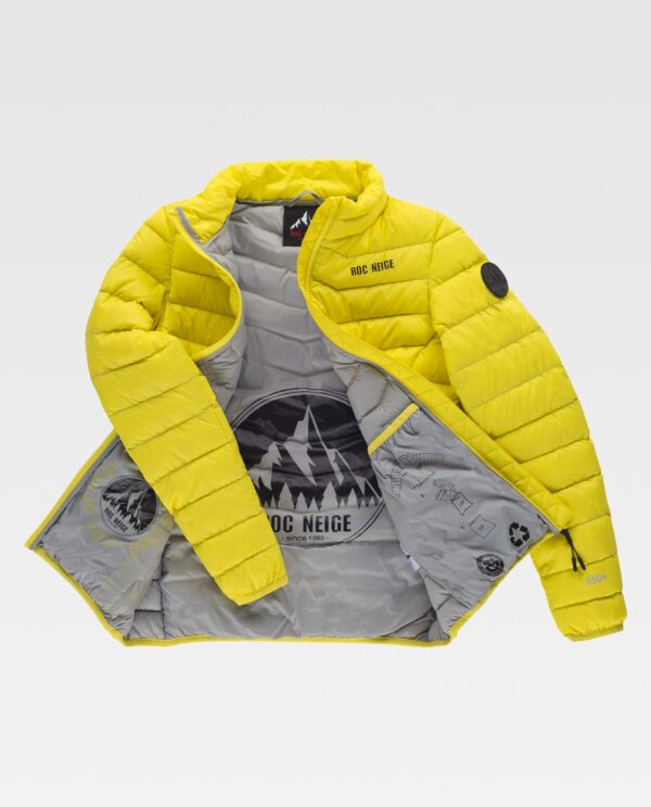 LEXE Jaqueta de mulher de pluma 90:10 assegurando a regulação do calor corporal. Tecido anti-rasgo Ripstop de nylon 100% Reciclado. Tratamento repelente à água e cremalheiras impermeáveis. Dois bolsos laterais interiores com cremalheira. Embainhado com viés elástico. Leve e dobrável no bolso interior. Logótipo estampado no peito, gola e no interior. Fabricada em náilon reciclado, ajudando a favorecer um meio mais sustentável cuidando o meio ambiente e as práticas de produção têxteis. Poder calorífico: 550+