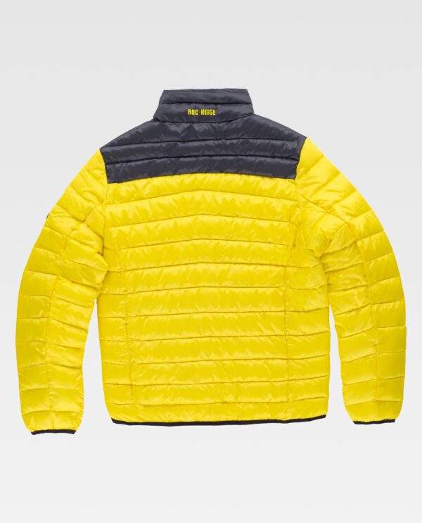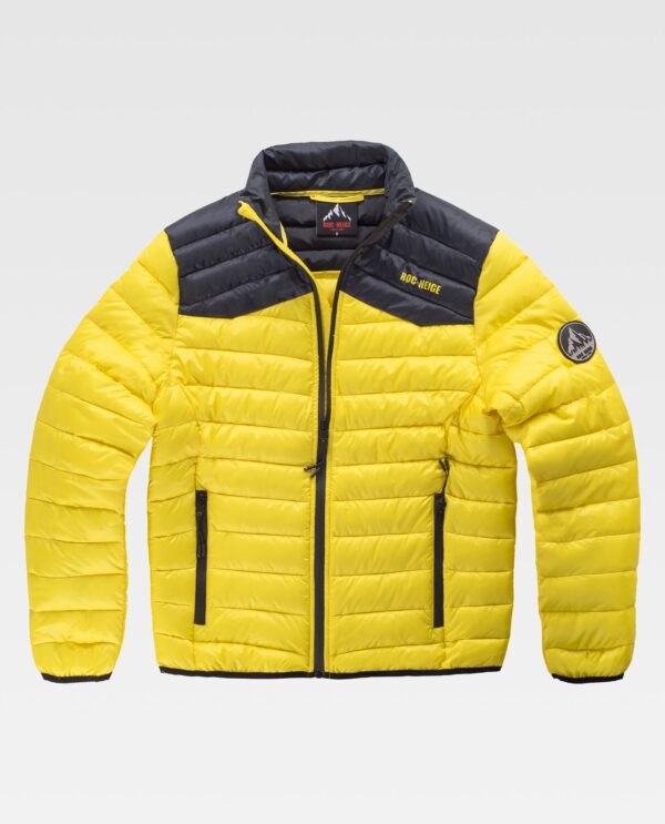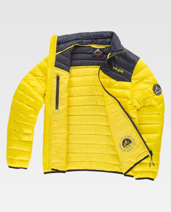 RÄCK Jaqueta combinada com corpete em contraste e tecido exterior reciclado. Tratamento repelente à água e cremalheiras impermeáveis. Fecho de cremalheira e protecção no queixo. Dois bolsos laterais interiores com cremalheira. Um bolso de pala com fecho de cremalheira no interior. Embainhado com viés elástico. Logótipo estampado no peito e gola. A versão actualizada e mais sustentável do clássico plumas Roc-Neige. Durável e resistente.