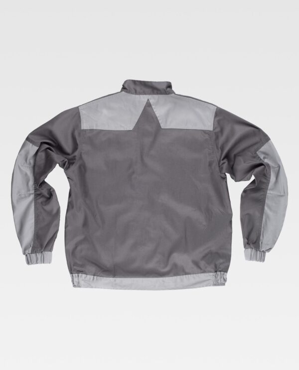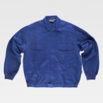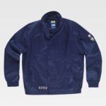 Blusão combinado com costura tripla e corpete nas costas. Gola alta e fecho de correr de náilon oculto por aba com velcro. Dois bolsos no peito interiores com fecho de correr e dois bolsos duplos com fole e lapela de velcro. Dois bolsos laterais interiores com fecho de correr. Mangas combinadas. Punho com elástico. Elástico nos laterais da cintura.