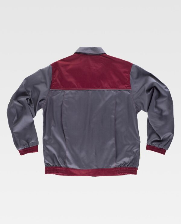 Casaco combinado com debruns refletores e costuras em contraste. Gola tipo camiseiro e corpetes com debruns em contraste que seguem na para de frente da manga. Fecho de correr de náilon oculto para aba com velcro. Dois bolsos no peito de chapa com lapela de velcro e fita para telemóvel. Dois bolsos laterais de abertura inclinada com debrum. Punho com elástico. Costas com dobras. Fecho de velcro na cintura e elástico nos laterais.