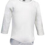 Body de bebé de manga comprida, confortável e versátil. Confecionado em tecido de malha lisa de ponto interlock 100% algodão Ring Spun suave e confortável. Gola redonda e ombros montados para facilitar a mobilidade. Costuras em debrum na gola, bainha e punhos que aumentam a sua resistência e durabilidade. Abertura inferior com botões de pressão para facilitar a colocação da fralda. Métodos adequados de marcação: serigrafia, transfer, vinil, bordados, cosidos. Ideal para brindes personalizados, merchandising, souvenir, uso cotidiano e como roupa interior.