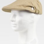 Boina inglesa em tecido de ganga. Ajuste lateral com fivela metálica e presilha oculta.
