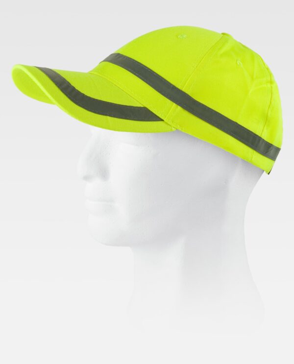 Boné adaptável de alta visibilidade, desenho com fleco reflector horizontal.