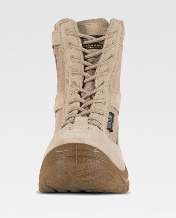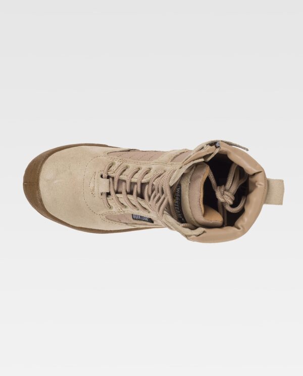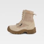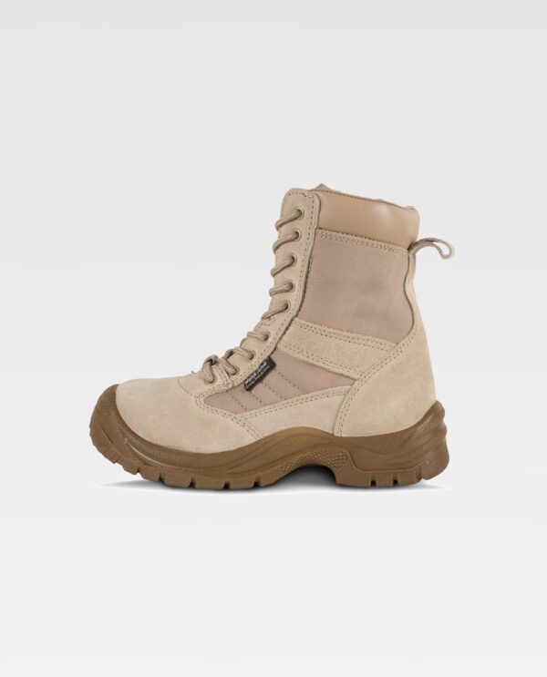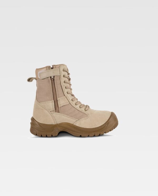 Bota de pele com fecho de correr lateral e cordões. Tecido oxford acolchado dos lados e lingueta, forrados com tecido de malha. Sola de PU dupla densidade. Impermeável.