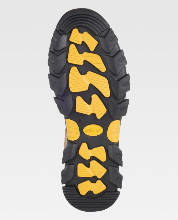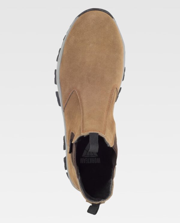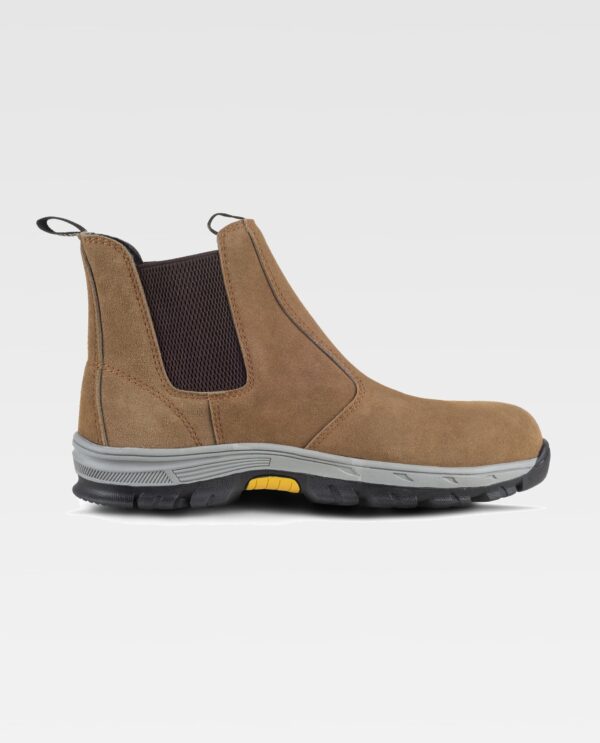 Bota de serragem sem cordoes. Isento de metal. Elástico nos laterais e presilha para pegar na parte trás do calcanhar e na lingueta. Biqueira de composite anti-impactos e palmilha têxtil anti-perfuraçao. Palmilha EVA acolchoada para um maior conforto. Sola combinada em duas cores e propriedades antiestáticas. Absorção da energia na zona do salto. Resistente a perfuração. Resistente aos hidrocarbonetos. Resistente ao deslizamento sob lousa cerâmica com dissolução de sabão e sob aço com glicerina. S1P SRC.