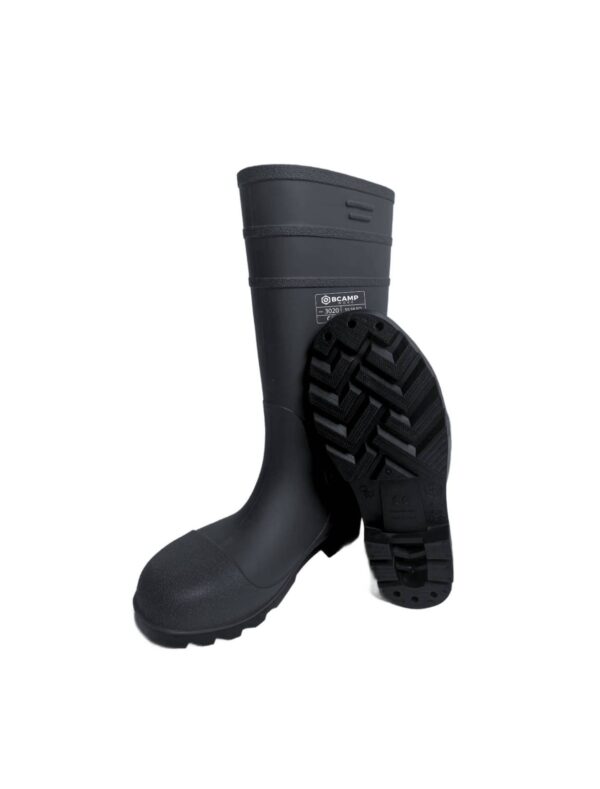 BOTA DE ÀGUA – S5 SR FO Em PVC; Espessura: 1.8 mm; Palmilha de aço; Biqueira de aço; Resistente à àgua; Anti-estático; Anti-derrapante; Resistente a hidrocarbonetos (óleos e combustíveis); Tacão resistente ao choque.