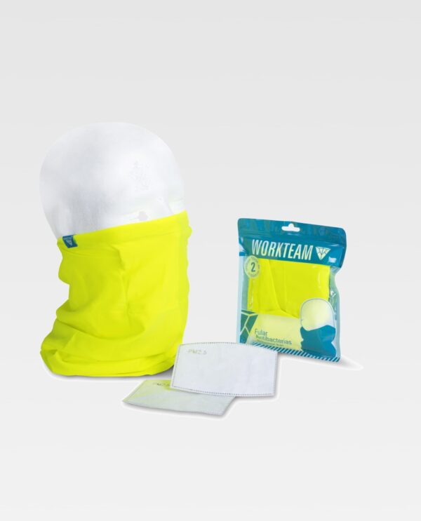 Gola de ponto multifunção de alta visibilidade com clipe nasal ajustável. É ajustável aos diferentes tipos de rostos. Possibilidade de inserir filtro. Inclui dois filtros com 5 camadas de protecção.