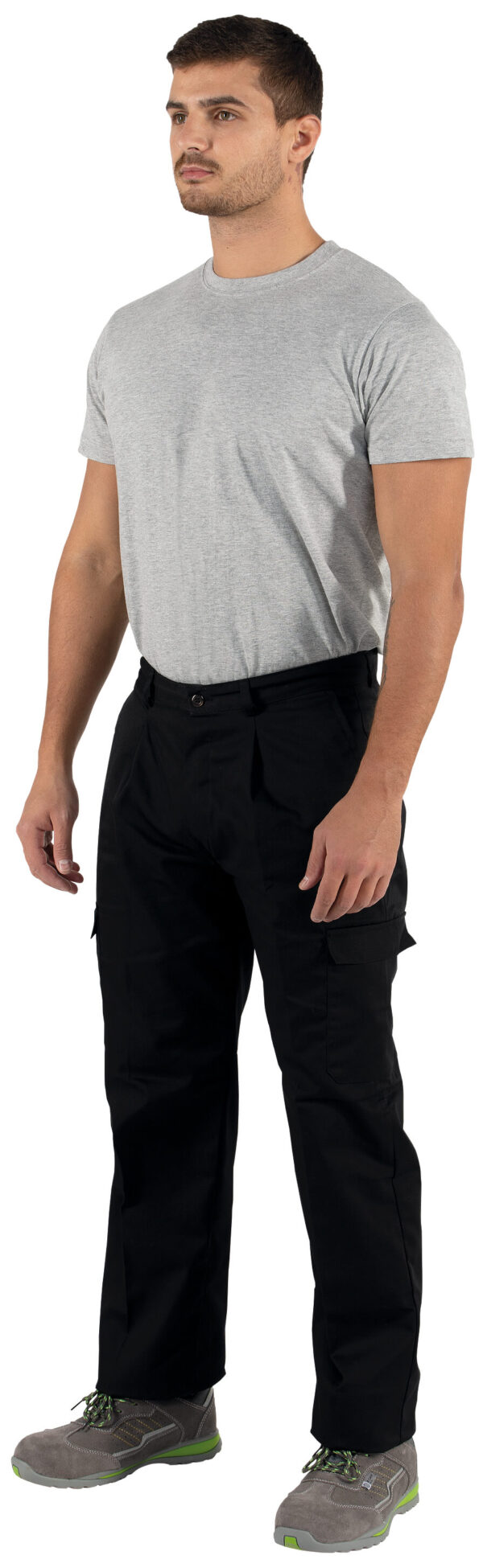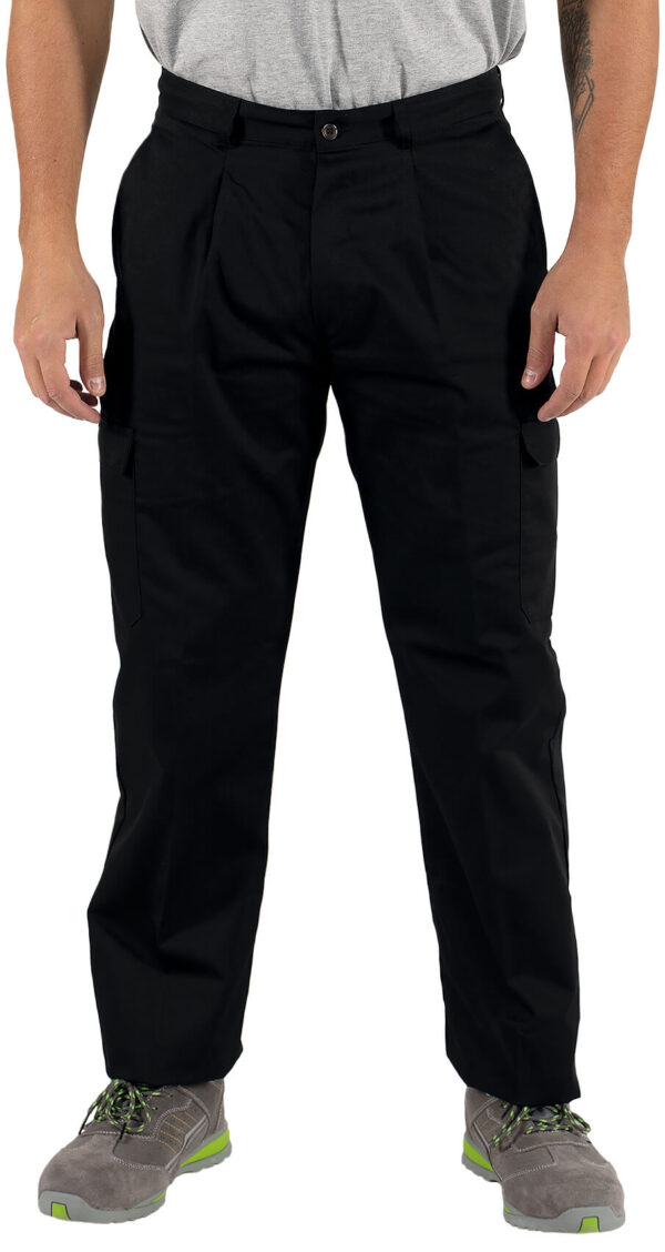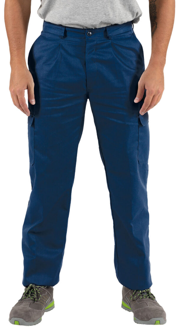 Calça em Sarja;65% Poliester 35% Algodão de 240 g.;4 bolsos laterais e 1 bolso traseiro;Fecho por botões.