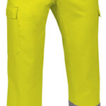 Calças multibolsos de Alta Visibilidade. Confecionadas em tecido de sarja algodão e poliéster para durabilidade e resistência (monocolor 100% poliéster), com duas fitas retro-refletoras cosidas nos punhos das pernas para maior segurança. Vestuário certificado como EPI de Categoria II de Alta Visibilidade de acordo com as normas 13688 e 20471, classe 1, duração máxima de 25 lavagens. Fecho de correr com botão e pala, presilhas para cinto, pregas dianteiras e metade traseira elástica para melhor ajuste e conforto, costuras duplas principais e pontos de maior tracção reforçados com presilhas de segurança para maior durabilidade e resistência. Dois bolsos inclinados na cintura, um traseiro direito e dois laterais com pala e velcro, para ter tudo acessível e disponível. Métodos adequados de marcação: serigrafia, transfer, vinil, bordados, cosidos. Ideal como roupa de trabalho e uniformes profissionais.