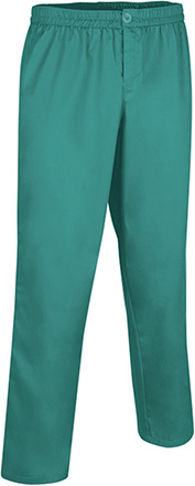 Calças de trabalho de corte recto. Confecionadas em tecido de sarja de algodão com poliéster para durabilidade e resistência. Fecho de correr com botão e pala, cintura com fita elástica para conforto e melhor ajuste. Bolso traseiro direito para realçar a marca. Costuras principais reforçadas para durabilidade e resistência. Métodos adequados de marca: serigrafia, transfer, vinil, bordados, cosidos. Ideal como roupa de trabalho, uniformes médicos e uniformes de salão de beleza, combina com casacos LINK e HELSINKI.