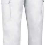 Calças de trabalho multibolsos. Confecionadas em tecido respirável sarja 100% algodão para durabilidade e resistência. Fecho de correr com botão e pala, presilhas para cinto, pregas dianteiras e metade traseira elástica para melhor ajuste e conforto. Dois bolsos inclinados na cintura, um bolso traseiro no lado direito e dois laterais com pala e velcro para ter tudo acessível. Costuras principais duplas e pontos de maior tração reforçados com presilhas de segurança para durabilidade e resistência. Métodos adequados de marcação: serigrafia, transfer, vinil, bordados, cosidos. Ideal como roupa de trabalho e uniformes profissionais.