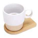 Caneca com base especial em barro para sublimação, inclui suporte em bambu.Capacidade: 315 ml