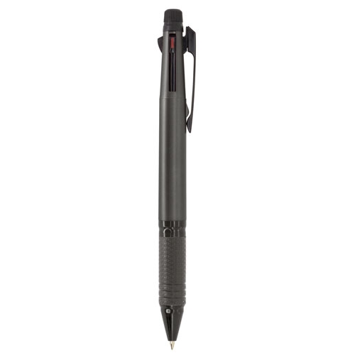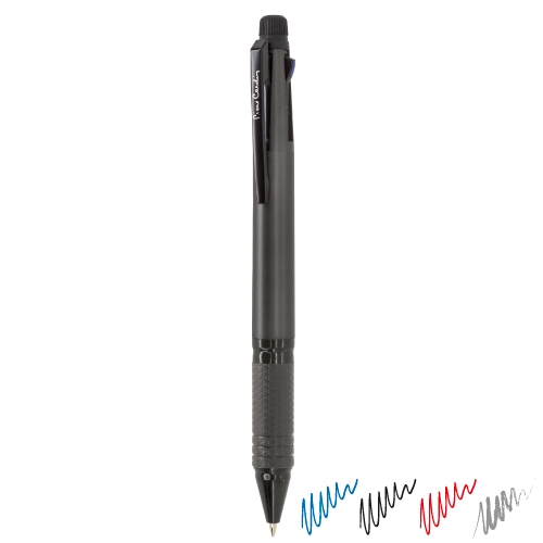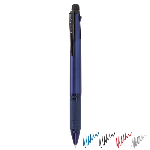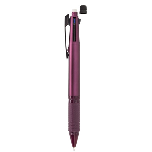 5 em 1, caneta escritura azul, vermelho e negro, portaminas e borracha. Disponivel em cor negro, vermelho e azul.