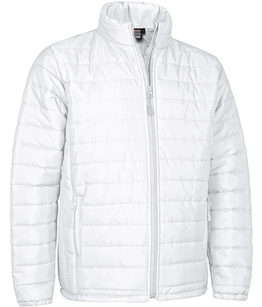 Casaco acolchoado com efeito térmico. Confecionado em tecido Loft leve e acolchoado com exterior plano repelente à água, forro interior e acolchoado para isolamento térmico extra através de canais. Gola alta com fecho de correr completo incluindo protetor do queixo para conforto extra. Cintura com cordão elástico e stoppers para um melhor ajuste. Dois bolsos verticais na cintura com fecho de correr e um bolso interior com velcro para ter tudo acessível. Acesso com fecho na parte interior das costas para facilitar a marcação: serigrafia, transfer, vinil, bordados, cosidos. Ideal para têxteis publicitários e roupa casual.