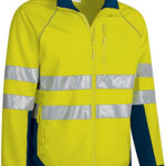 Casaco softshell de Alta Visibilidade. Confecionado em tecido de softshell bi-elástico grosso com três camadas (exterior plana hidrófuga, intermédia respirável e interior micropolar), inclui duas fitas retro-refletoras cosidas no tronco, costas e mangas para maior segurança. Vestuário certificado como EPI Categoria II de Alta Visibilidade de acordo com as normas 13688 e 20471, classe 2, duração máxima de 25 lavagens. Manga raglan com vivo refletor, punhos ajustáveis de fecho elástico com função de gancho (Mushroom System), fecho de correr completo com protetor de queixo e cintura com cordão elástico para melhor ajuste e conforto. Dois bolsos verticais na cintura e um no lado esquerdo do peito para ter tudo acessível. Métodos adequados de marcação: bordados, cosidos e termo-adesivos anti-sublimação. Ideal como roupa de trabalho e uniformes profissionais.