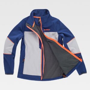 Casaco Softshell com três bolsos. Confecionado em tecido de softshell elástico de três camadas (exterior plana hidrófuga, intermédia respirável e interior micropolar) com efeito corta-ventos, repelente à água e alta retenção térmica.Gola alta de dupla camada com fecho de correr completo, pala e botões de pressão para maior calor e conforto.Punhos ajustáveis com velcro e cintura com cordão elástico e stoppers para um melhor ajuste. Dois bolsos inclinados na cintura e um bolso vertical no lado esquerdo do peito, os três com fecho de correr para ter tudo acessível. Métodos adequados de marcação: bordados, cosidos e termo-adesivos anti-sublimação. Ideal como roupa de trabalho, têxteis publicitários e roupa desportiva.