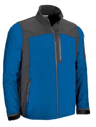 Casaco softshell multibolsos com desenho bicolor. Confecionado em tecido softshell elástico de três camadas (exterior plana hidrófuga, intermédia respirável e interior micro polar), com efeito corta-ventos, repelente à água e alta retenção térmica, reforço en tecido softshell em cotovelos que aumenta sua durabilidade nas zonas de maior desgaste. Gola alta de dupla camada com fecho de correr completo incluindo protetor do queixo para maior calor e conforto. Punhos ajustáveis de fecho elástico com função de gancho (Mushroom System), cintura reta com cordão elástico e stoppers para um melhor ajuste. Dois bolsos na cintura e um no lado esquerdo do peito, todos verticais com interior polar e fecho de correr para ter tudo acessível, inclui também outro bolso na manga esquerda para guardar o telemóvel e acessórios. Métodos adequados de marcação: bordados, cosidos e termo-adesivos anti-sublimação. Ideal como roupa de trabalho, roupa desportiva e têxteis publicitários.