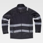 Casaco Workshell de alta visibilidade combinada com fitas refletoras. Gola alta forrada com polar e capuz enrolável com cordão ajustável. Cremalheira de nailon de fecho inverso. Lapela protetora interior na parte superior cobrindo o puxador. Dois bolsos laterais inseridos com cremalheiras de nailon. Um bolso no peito e outra na manga com cremalheira. Fitas refletoras segmentadas termo-adesivas no peito, ombros, costas e mangas. Duas fitas cosidas nas costas e laterais. Fita decorativa personalizada na manga. Punho ajustável com velcro. Cordão elástico com peça ajustável na parte inferior. Tecido corta ventos, repelente de água e resistente ao rasgo com membrana interior transpirável, isolante e interior de alta capacidade térmica. Tecido interior suave, com forro de rede adiante.