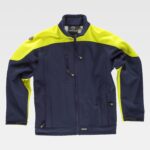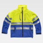 Casaco Workshell combinado de fitas refletoras. Gola alta e fecho de correr. Aba protetora interior com volta na parte superior protegendo o fecho de correr. Um bolso no peito e dois laterais interiores de fecho de correr. Duas fitas refletoras no peito, nas costas e nas mangas com peça central de alta visibilidade. Punhos ajustáveis com velcro. Cordão elástico com peça ajustável na gola e no baixo. Tecido corta-ventos, repelente à água e resistente ao rasgo com membrana interior transpirável e isolante no interior de alta capacidade térmica.