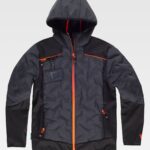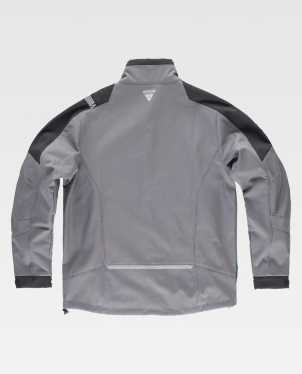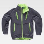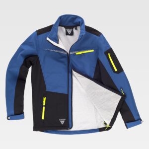 Casaco Workshell combinada. Gola alta e fecho de cremalheira de náilon. Lapela protectora interior à volta na parte superior cobrindo a cremalheira. Dois bolsos laterais interiores com fecho de cremalheira. Punhos ajustáveis com velcro. Vivos decorativos, detalhes refletores e cremalheiras de fecho inverso. Fita refletora decorativa personaliza no ombro. Cordao elástico com peça ajustável na bainha. Tecido corta vento, repelente da àgua e resistente ao rasgo com uma membrana no interior transpirável e isolante, aliás de uma grande capacidade térmica. Tecido interior super macio com forro de rede no frontal.