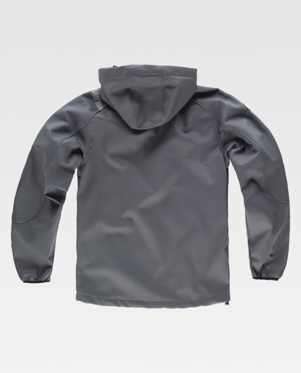 Casaco Workshell com vivos refletores. Gola alta e abrange nas costuras interiores. Capuz com cordão elástico e peça ajustável. Fecho de cremalheira de náilon. Aba protetora interior com volta na parte superior protegendo a cremalheira. Um bolso no peito e dois laterais interiores com fecho de cremalheira de náilon. Punhos com debrum elástico. Vivos decorativos e cremalheiras combinadas com fecho inverso. Cordão elástico com peça ajustável na bainha. Tecido corta-ventos, repelente à água e resistente ao rasgo com membrana interior transpirável e isolante no interior de alta capacidade térmica. Revestido com rede na parte da frente.