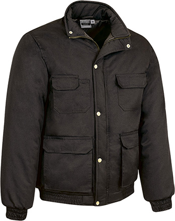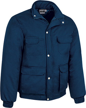 Casaco multibolsos acolchoado. Confecionado em tecido de sarja resistênte e duradouro no exterior, forro interior liso e acolchoado que proporciona maior retenção térmica. Gola alta de dupla camada com fecho de correr completo, pala e botões de metal para maior calor e conforto. Punhos e cintura com elástico interno franzido que se adapta confortavelmente ao corpo. Quatro bolsos frontais com fecho de pala e velcro e um bolso interior de velcro para ter tudo acessível, também inclui compartimentos para canetas. Acesso com fecho na parte interior das costas para facilitar a marcação: serigrafia, transfer, vinil, bordados, cosidos. Ideal como roupa de trabalho e uniformes profissionais.