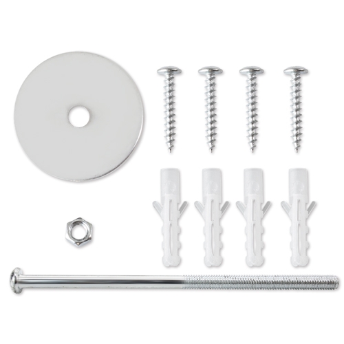 No interior, inclui parafusos e abraçadeiras para fixação à parede.