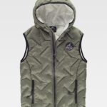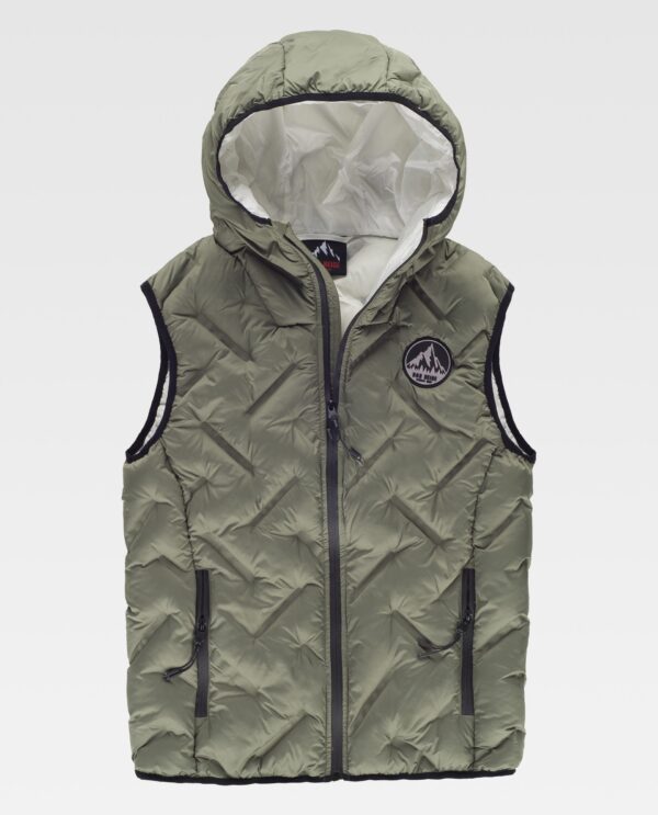 FÖLD Colete acolchoado, lacrado, com capuz e gola alta. O desenho original com lacrado oferece estilo e conforto. Costuras lacradas. Tratamento repelente à água e cremalheiras impermeáveis. Fecho de cremalheira e proteçao no queixo. Dois bolsos laterais interiores com cremalheira oculta. Um bolso de chapa com fecho de cremalheira no interior. Embainhado com viés elástico. Logótipo estampado nas costas e detalhes estampados no interior.
