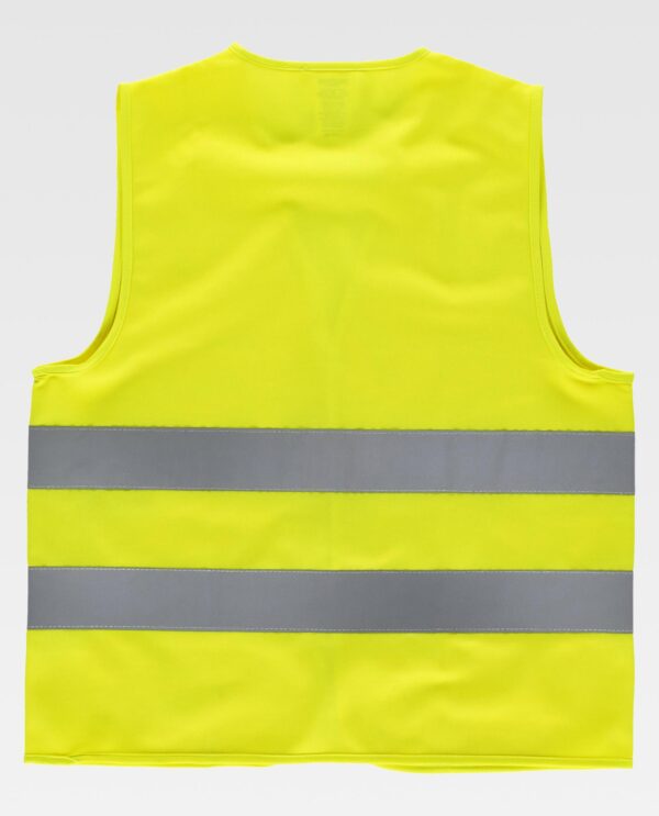 Colete criança de visibilidade melhorada com fitas refletoras. Decote em bico e fecho de velcro adaptável. Duas fitas refletoras no peito e nas costas. Bainha da mesma cor.