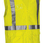 Colete refletor com porta-crachá. Confecionado em tecido respirável e resistente Ketten, com duas fitas retro-refletoras verticais cosidas nos ombros e uma horizontal no tronco e também nas costas, aumentando a visibilidade dos usuários. Vestuário certificado como EPI de Alta Visibilidade de Categoria II, em conformidade com as normas 13688 e 20471, classe 2, duração máxima de 50 lavagens. Gola aberta larga, confortável e refrescante, com fecho de correr completo para maior durabilidade, incluindo porta-crachá transparente no lado esquerdo do peito. Punhos e zona das axilas com debrum para maior resistência. Métodos adequados de marcação: serigrafia, transfer, bordados, cosidos. Ideal como roupa de trabalho, uniformes profissionais e colete refletor para veículos e indústria.