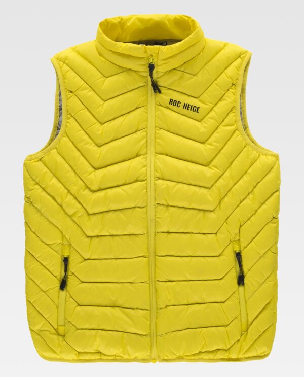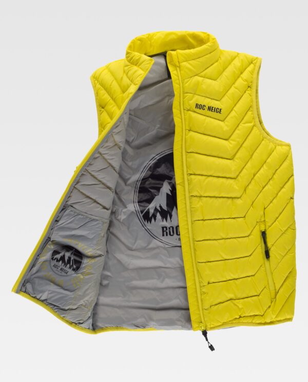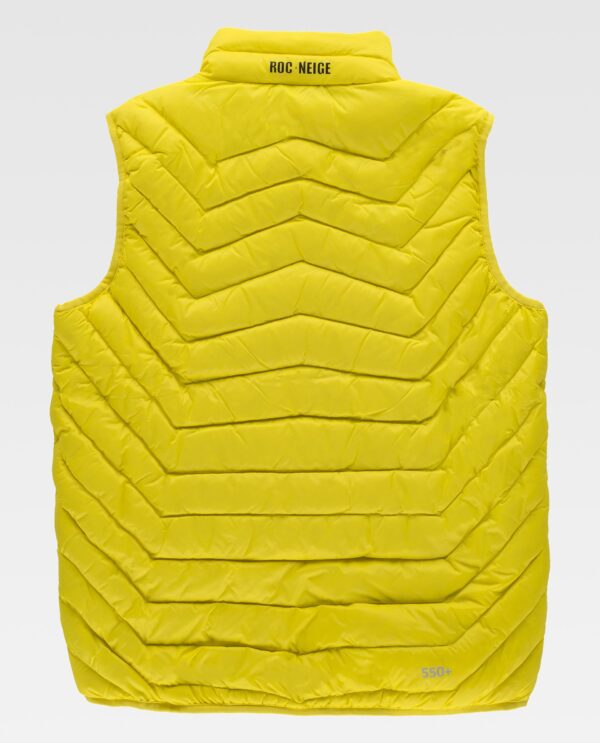 LEX Colete de pluma 90:10 assegurando a regulação do calor corporal. Tecido anti-rasgo Ripstop de nylon 100% Reciclado. Tratamento repelente à água e cremalheiras impermeáveis. Dois bolsos laterais interiores com cremalheira. Embainhado com viés elástico. Leve e dobrável no bolso interior. Logótipo estampado no peito, gola e no interior. Poder calorífico: 550+. Fabricada em náilon reciclado, ajudando a favorecer um meio mais sustentável cuidando o meio ambiente e as práticas de produção têxteis.