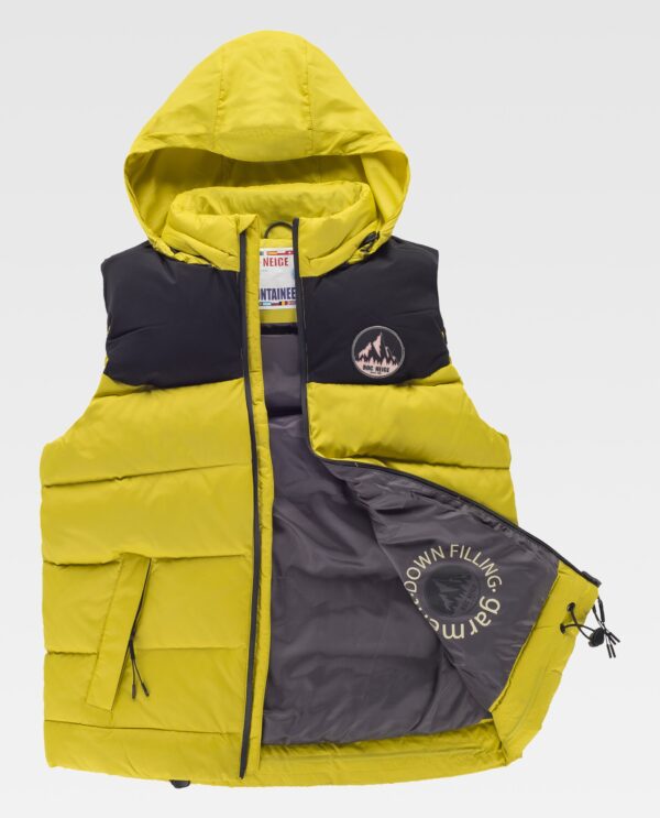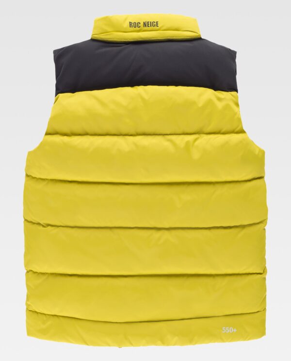 SÜOL Colete combinado em pluma reciclada 80:20 o que assegura uma regulação do calor corporal. Fabricada em tecido anti-rasgo Ripstop reciclado. Gola com capuz no interior e elástico ajustável. Tratamento repelente à água e cremalheiras impermeáveis. Fecho de cremalheira de duplo puxador e protecção no queixo. Dois bolsos laterais interiores com cremalheira oculta por lapela. Bainha com elástico ajustável. Punhos ajustáveis com molas de pressão. Dois tirantes interiores para tirar o casaco sem necessidade de retirar a mochila. Logótipos estampados na gola. Detalhes estampados no interior. Poder calorífico: 550+. As nossas peças Roc-Neige ajudam a criação de um meio ambiente mais sustentável, assim como a garantir a sua durabilidade e resistência, protegendo da chuva leve. Cómoda, versátil e distintivo clássico da versão plumas da Roc-Neige.