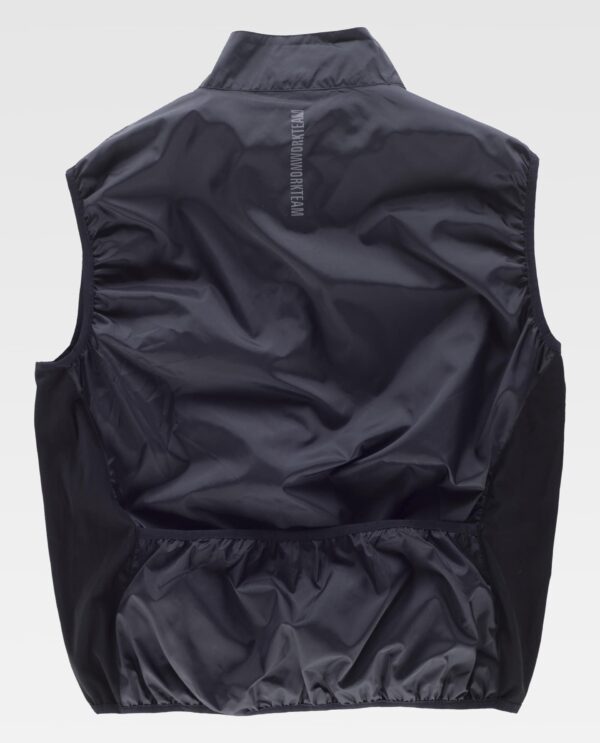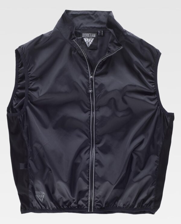 Colete gola alta e fecho de cremalheira de nailon. Vivos refletores. Um bolso nas costas e debrun elástico. Presilha para caneta no lateral. Laterais de tecido elástico e confortável para amplitude de movimento.