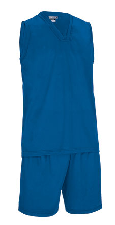 Conjunto desportivo composto por camiseta manga cava, gola em V e calções desportivos com desenho em cores lisas. Confecionado em tecido técnico respirável Bird-Eye que facilita a secagem rápida e a eliminação do suor. Camiseta manga cava, gola em V com debrum e com elástico que se adapta confortavelmente ao corpo. Calções desportivos com cintura elástica e cordão para melhor ajuste e maior conforto. Dupla costura na gola, zona das axilas, bainha da t-shirt e do calção que aumenta sua resistência. Métodos adequados de marcação: serigrafía, tranfer, bordados, cosidos. Ideal para vestir equipas desportivas, se vendem únicamente em conjuto.