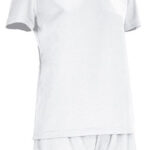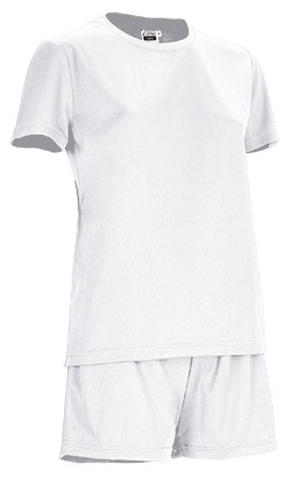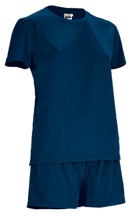 Conjunto desportivo para mulher, composto por t-shirt de manga curta, gola redonda e calções desportivos. Confecionado em tecido técnico respirável Bird-Eye que facilita a secagem rápida e a eliminação do suor. T-shirt de manga curta e gola redonda em canalé elástico que se adapta confortavelmente ao corpo. Calções desportivos com cintura elástica e cordão para melhor ajuste e maior comodidade. Dupla costura na gola, mangas, bainha da t-shirt e do calção que aumenta sua resistência. Métodos adequados de marcação: sublimação sobre a cor branca, serigrafía, transfer, bordados, cosidos. Ideal para vestir equipas desportivas, se vendem únicamente em conjuto.