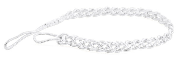 Cordão de gala. Feito de cordão flexível e resistente. Trançado com laços em ambas as extremidades, um mais longo para passar através da almofada de ombro, o outro mais curto para passar através do botão de bolso superior. Ideal para uniformes de segurança e fardas de gala.