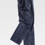 Fato de água impermeável com fitas refletoras. Parte superior: Impermeável com fecho de correr de náilon. Gola alta com capuz interior ajustável com cordão. Dois bolsos laterais sobrepostos. Um bolso de chapa no peito com velcro no interior. Uma fita refletora nos ombros e duas no peito, nas costas e nas mangas. Punho elástico no interior da manga. Baixo ajustável com cordão. Revestido no interior. Parte inferior: Calça impermeável com cintura elástica. Duas fitas refletoras nas perneiras. Aberturas laterais de acesso no interior. Baixo ajustável com presilhas.