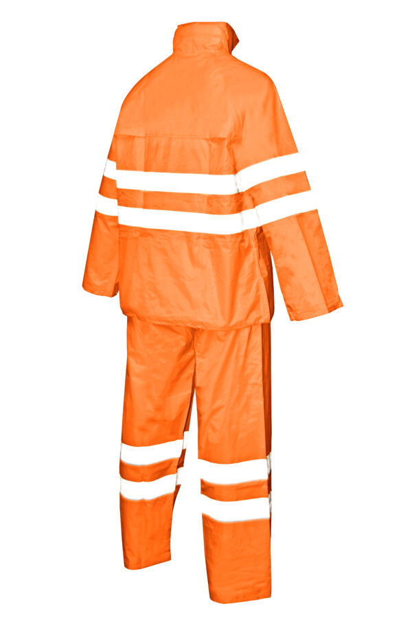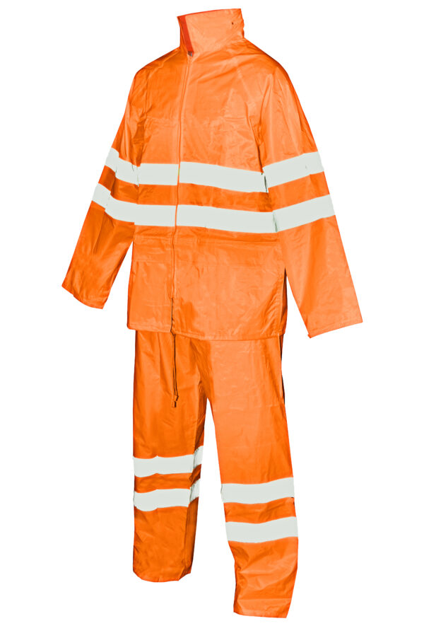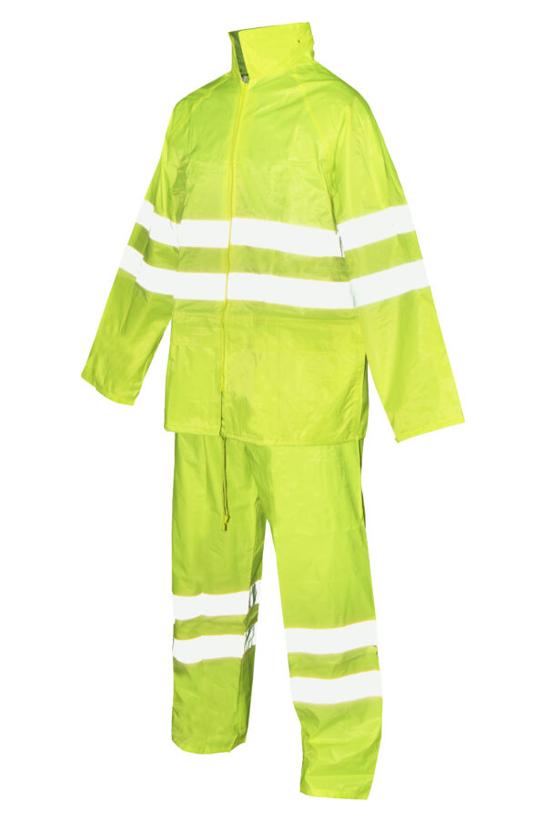 Fato de Chuva;Alta visibilidade, EN ISO 20471:2013 classe 350% Poliester 50% PVC;Ajuste por fecho zipper;Com capuz.