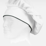 Gorro francês de cozinha estilo cogumelo. Dobras na parte superior e ajuste com velcro na parte posterior para uma melhor regulação