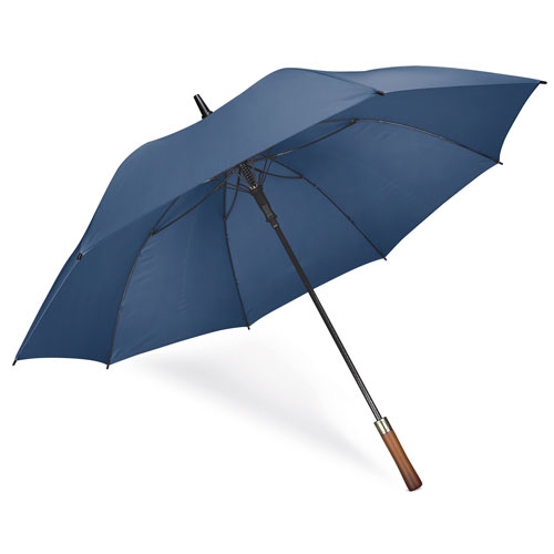Guarda-chuva com pulsador e mango de madeira, ademais a sua tela é impermeável. Disponivel em cores marino, negro e pedra.