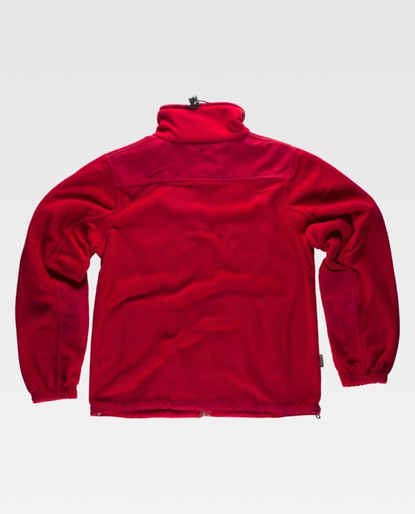 Jaqueta polar combinado com tecido de toque de pêssego em corpetes e cotovelos. Gola alta ajustável e fecho de fecho de correr de náilon. Um bolso no peito e dois bolsos laterais interiores com fecho de correr de náilon. Bainha. Punho com elástico. Cordão elástico com peça ajustável na gola e cintura.